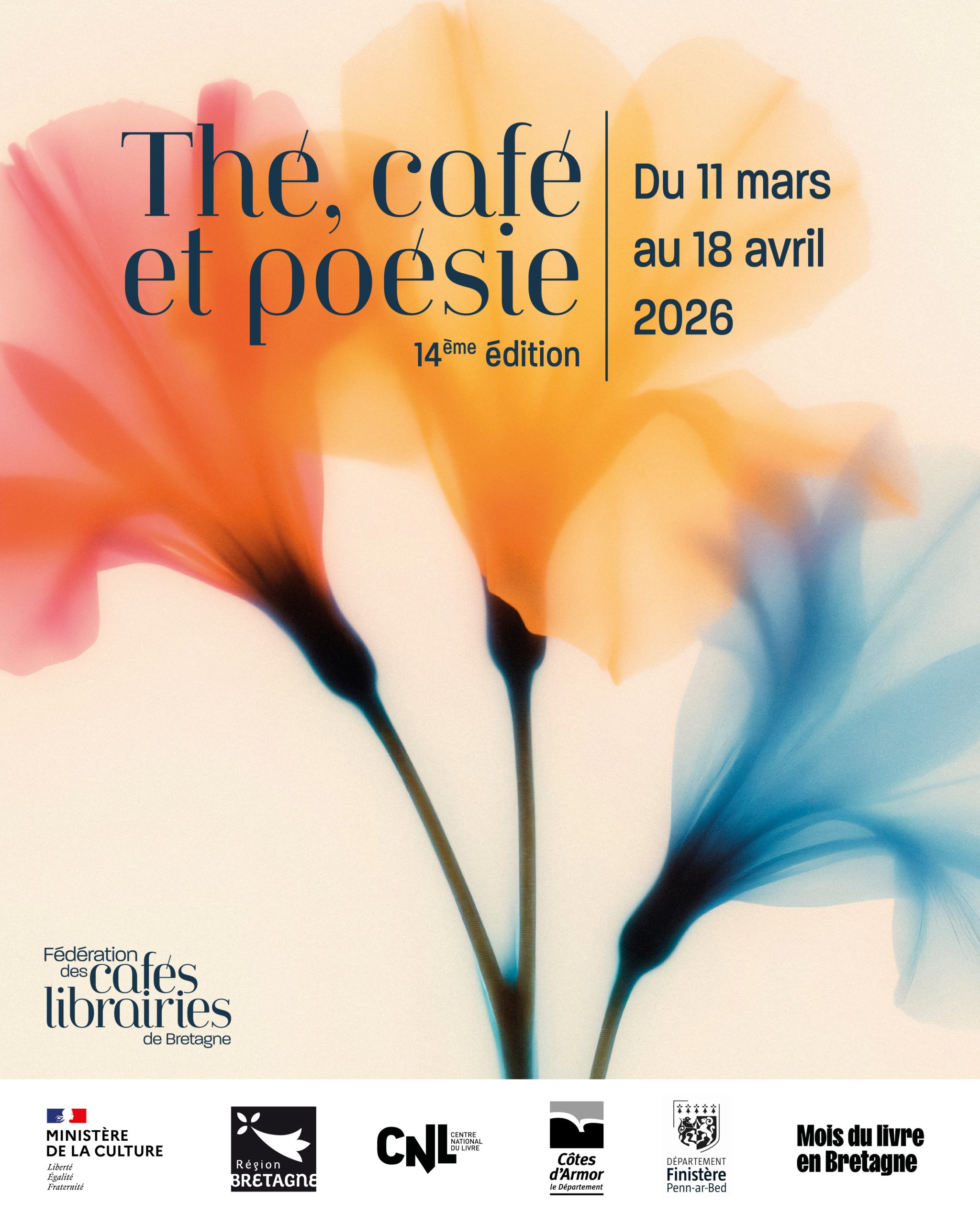 La quatorzième édition de THÉ, CAFÉ ET POÉSIE se déroulera du 11 mars au 18 avril 2026.