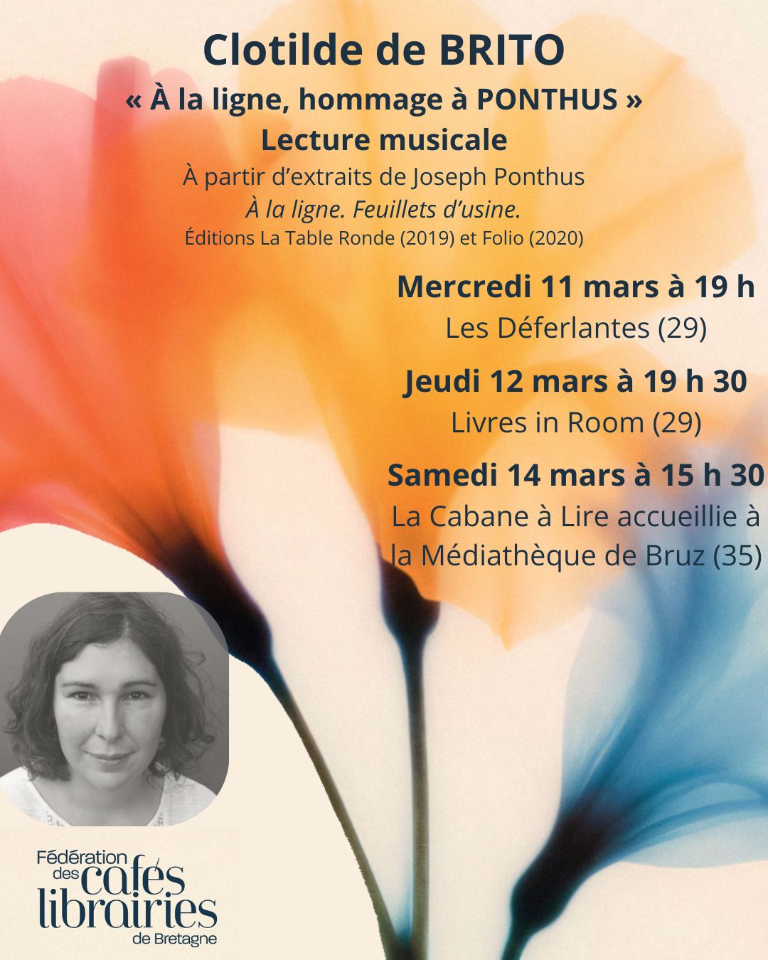 Cette première semaine s’inscrit dans le cadre du Mois du livre en Bretagne. Nous remercions Livre et Lecture en Bretagne pour le soutien accordé à notre programmation.